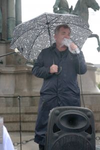 aten statt Worte. KünstlerInnen können von Ankündigungen alleine nicht leben. Viele KünstlerInnen sind in eine Notlage geraten und können sich ihre Miete und ihr Essen nicht mehr leisten. Deshalb forderten zahlreiche Besucher und Künstler bei der Demo vor Ort, ein Bedingungsloses Grundeinkommen, sowie die Soforthilfe aller Kunst und Kulturschaffenden in Österreich. Die soziale Lage der Kunstschaffenden war schon vor der Krise vielfach bestürzend und Corona hat dies noch verschärft. Als Redner auf der Bühne sprachen u.a Schauspieler und Kabarettist Josef Hader, Kabarettistin Guggi Hofbauer, Andrea Eckert (Schauspielerin / Intendantin). Mit dem Auftritt des Roma-Musikers Harri Stojka, endete die Kundgebung.